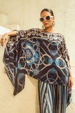 A flattering and elegantly flowing outfit that delivers a relaxed and stylish look. The kaftan top can be worn straight as a boat neck, slightly off shoulder or even as an one-shoulder ! Paired with a soft draped dhoti skirt, that’s just so comfortable! . The kaftan is delicately edged with beadwork.