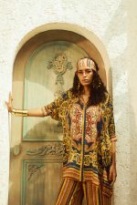 A blend of fluid grace and structured ease, this co-ord set features a direct-sleeve shirt paired with draped harem pants. The shirt offers a timeless silhouette in a relaxed fit edged with beadwork. While the harem pants bring a touch of contemporary ease with their loose yet flattering cut.
