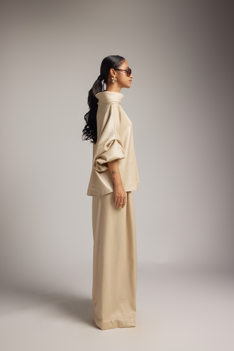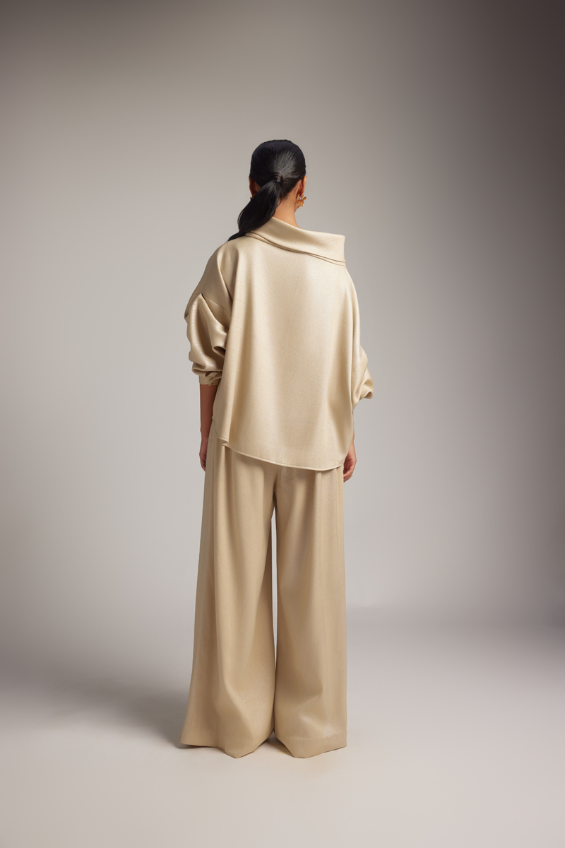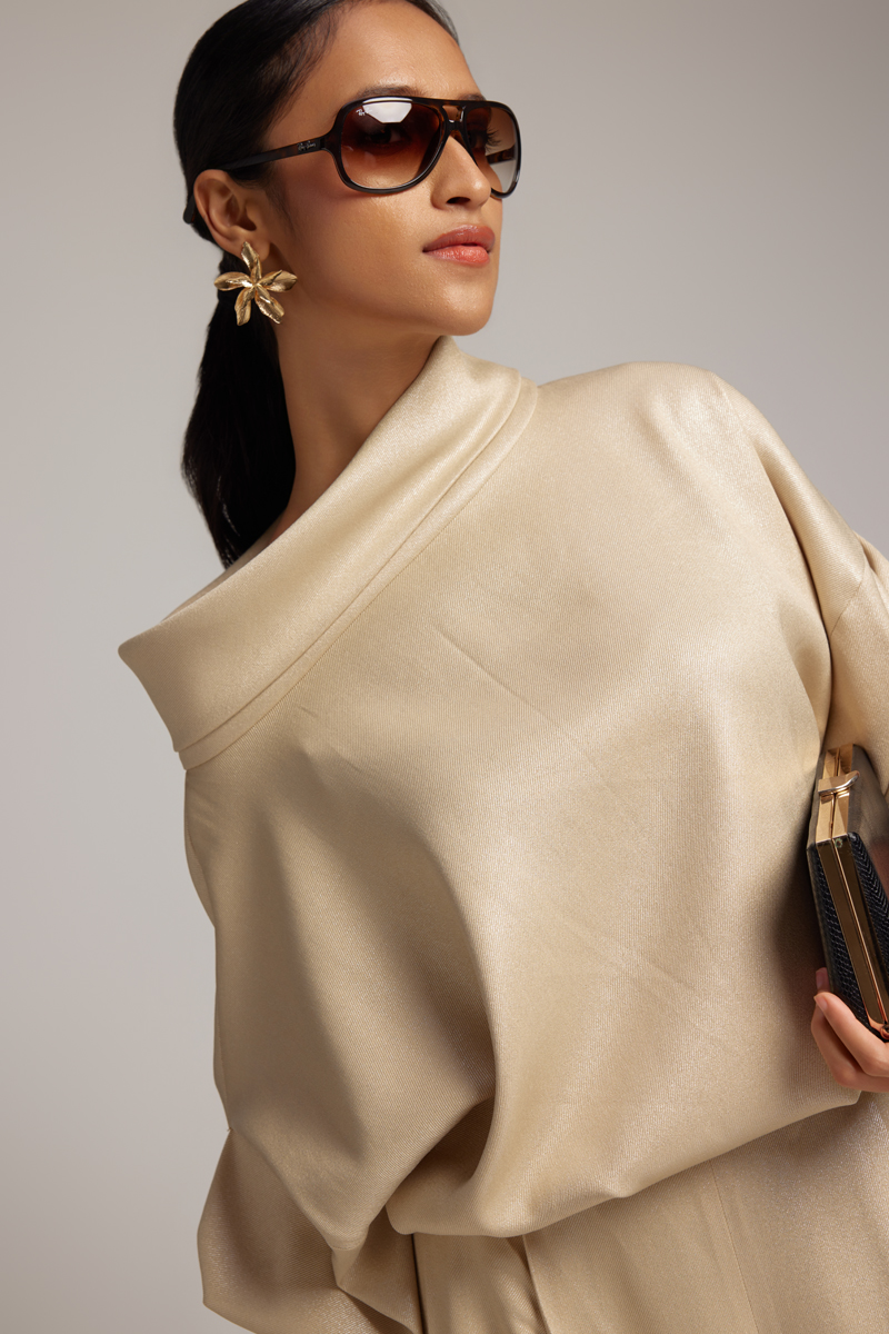 Home COLLECTIONS MONOCHROME Gold Cowl Top & Pleated Pant