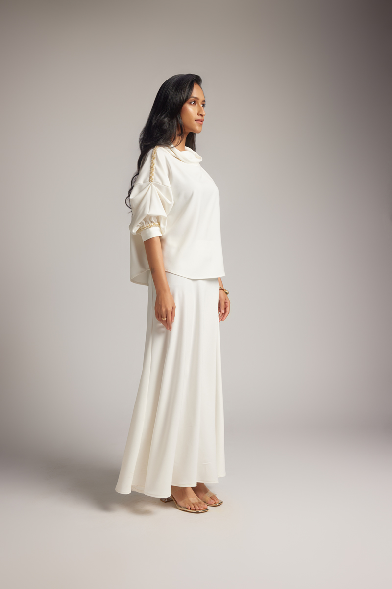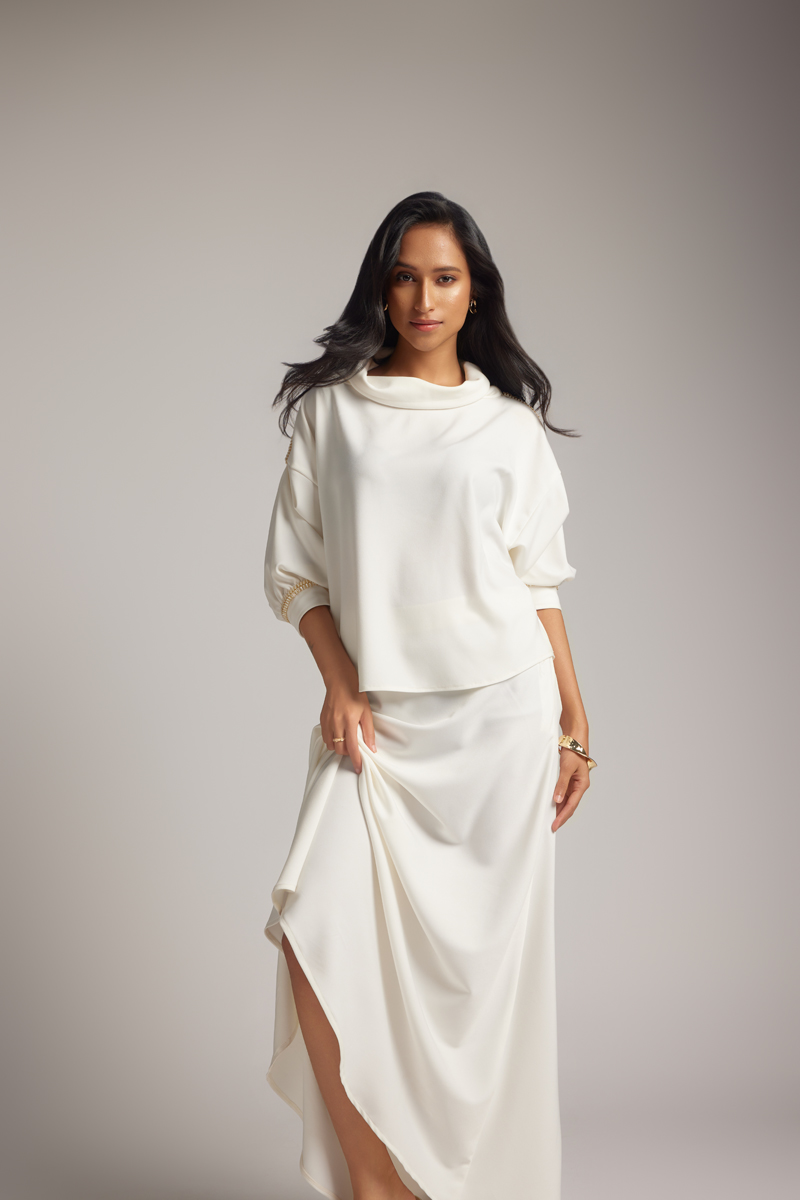 White Cowl Top & Skirt